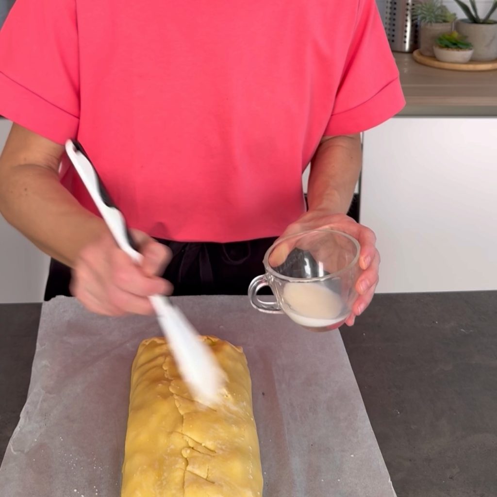 make cuts on the top with a knife, this way the moisture from the apples will escape during baking, and the pastry will be crisper.