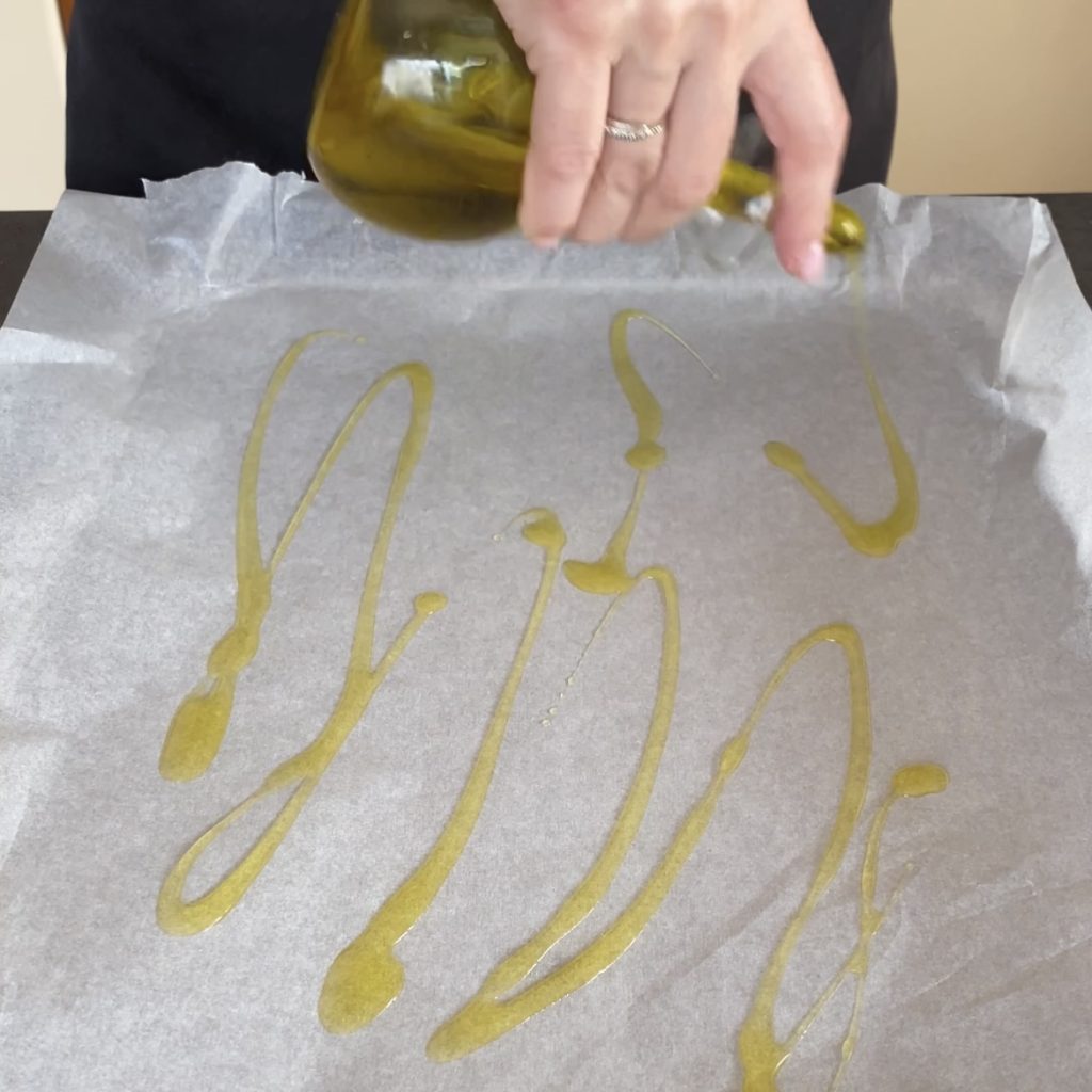 Then take out the tray and place slices of smoked provolone, or alternatively smoked cheese or mozzarella, on top of the pumpkin.