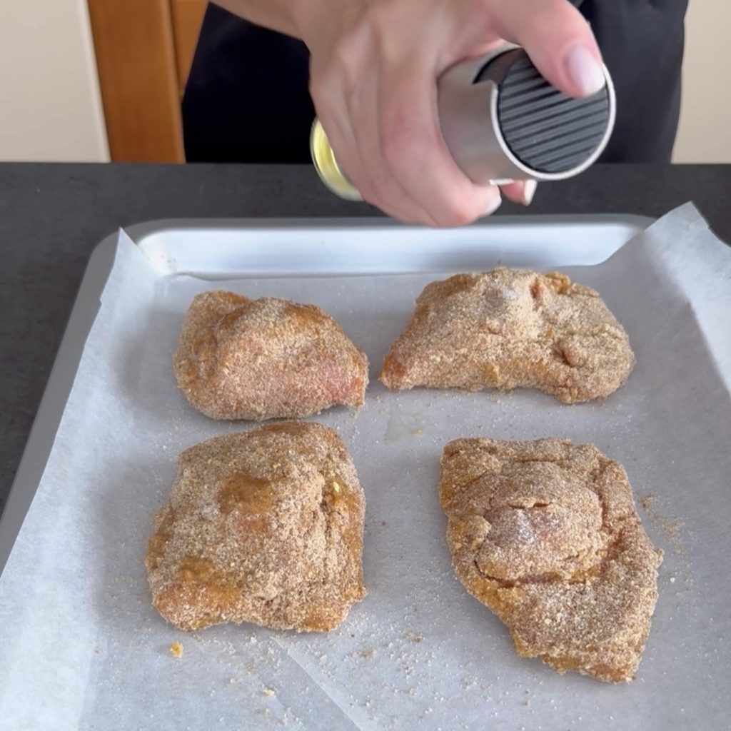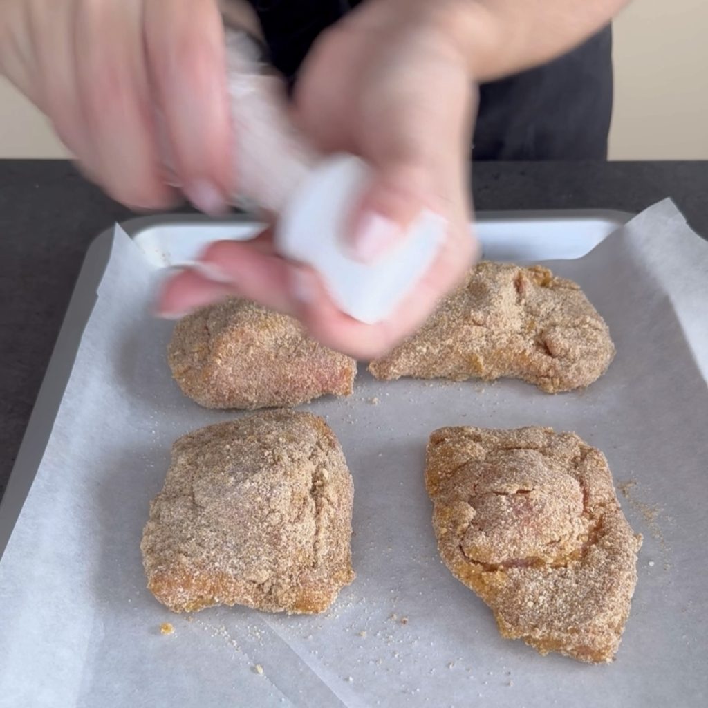 • Place the cordon bleu on the baking tray as you prepare them. Then add a pinch of salt on top of the breading