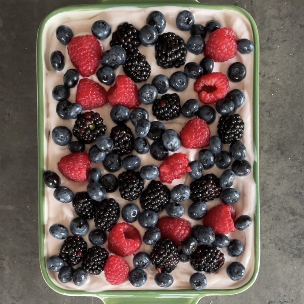 • 1.5 cups berry yogurt (3 containers of 4.4 oz each)