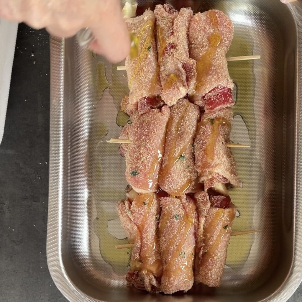 Breaded pork loin rolls are easy to make, they are delicious and thanks to the breading they remain tender and juicy. The pork loin rolls are oven-baked, alternatively, you can cook them in an air fryer to always get a crispy breading. The pork loin rolls with capocollo are tasty and the capocollo will add softness to the rolls. I cooked them like skewers, obviously, if you wish, you can also cook them individually and secure them with a toothpick or skewer; just make sure to keep them close together so the cheese doesn’t all come out. However, if some cheese does come out, you can simply gather it with a spoon and place it on top of the rolls. As a serving, I usually serve 2 rolls per person, but I always make a few extra because everyone loves them and they always want seconds. Now let’s see how to make breaded pork loin rolls, and if you try them, let me know. Barbara