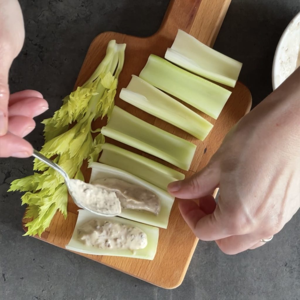 • then arrange the celery boats on a serving plate. I arranged and served them on a board, fill each piece of celery with the tuna sauce