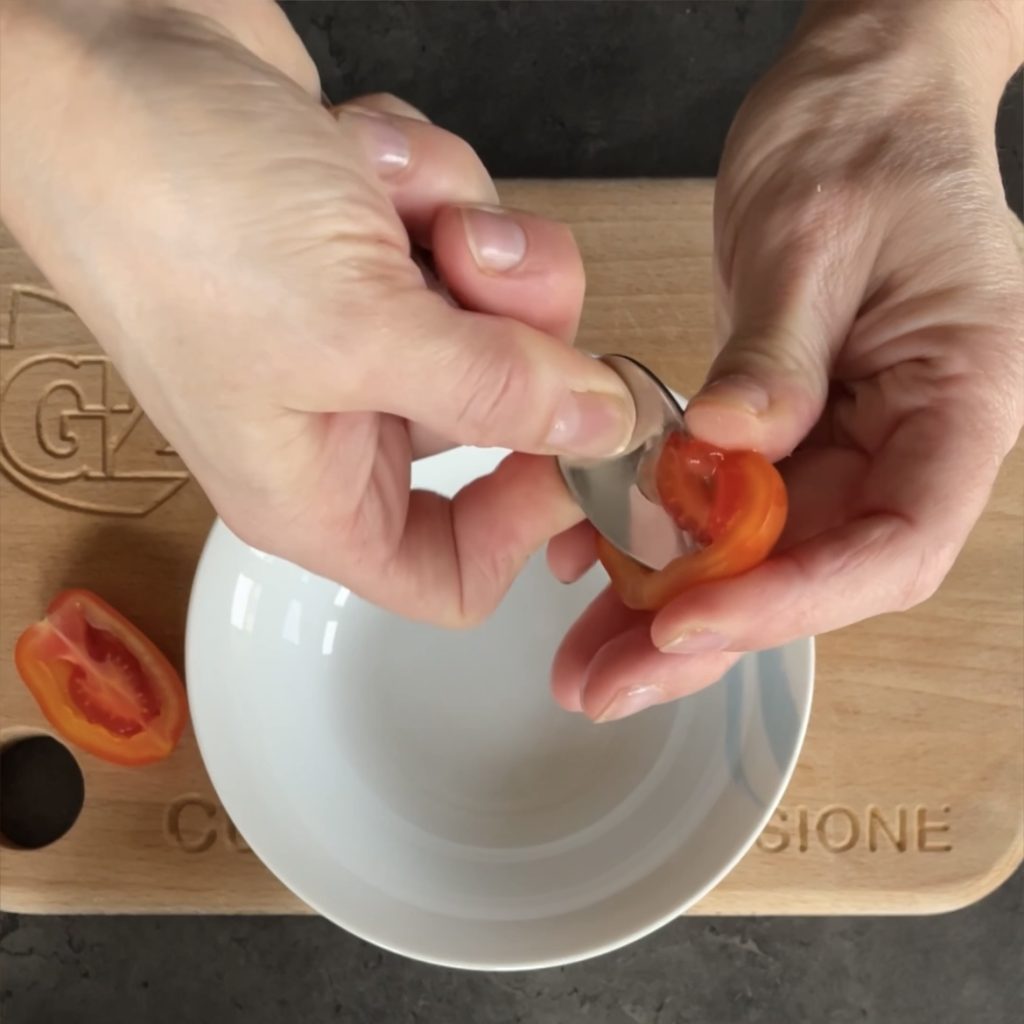 • scoop them out to remove the seeds and create a cavity to fill with the tuna sauce, gradually arrange them on the serving plate or a tray.