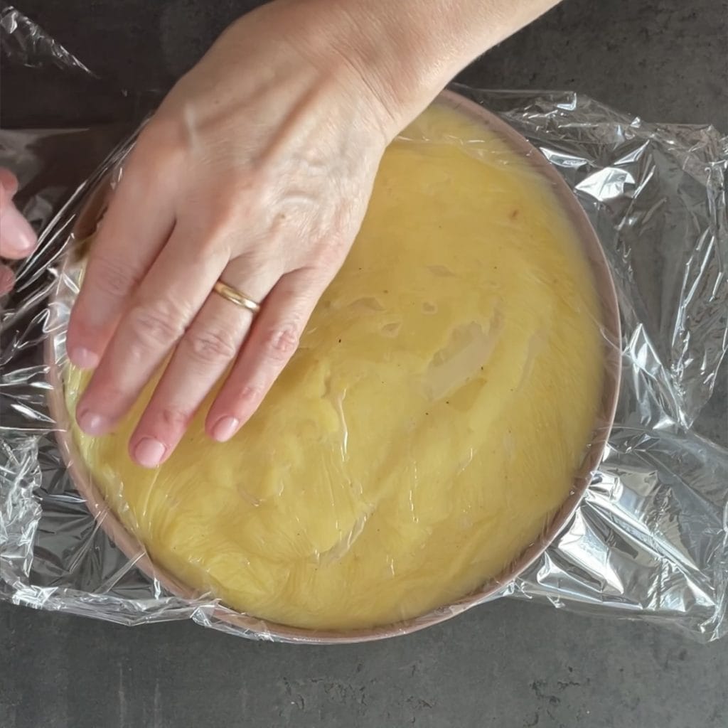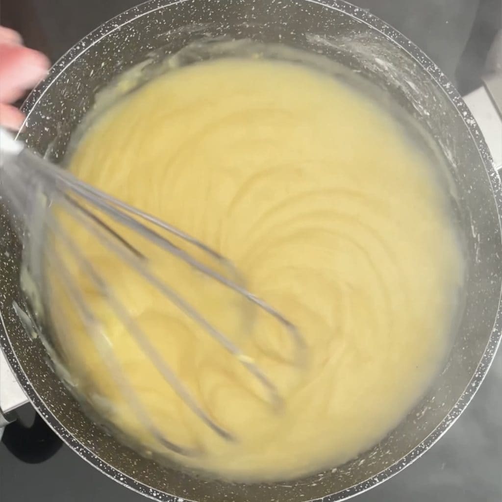 Remove the custard from the heat, add a teaspoon of vanilla essence