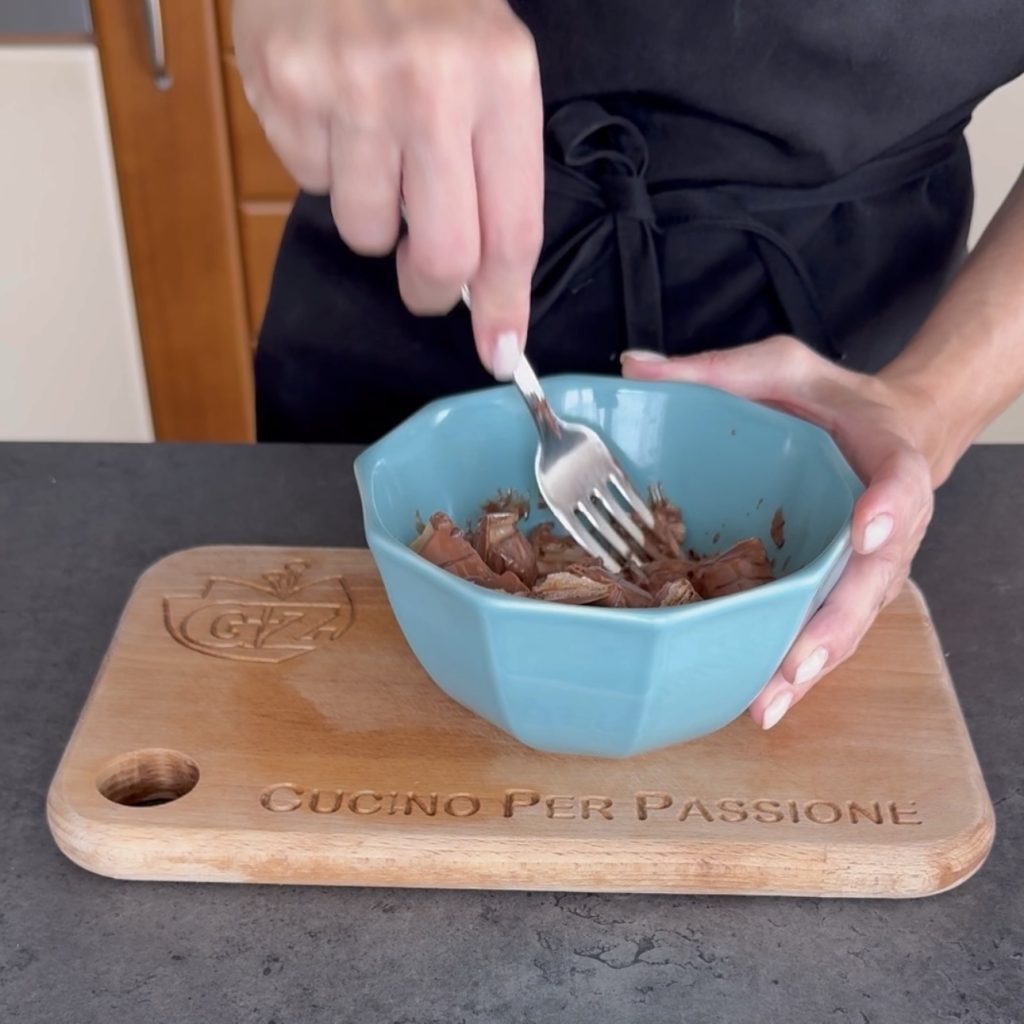 • Start preparing the Cream with Kinder Bueno, break the bars into pieces and place them in a bowl,