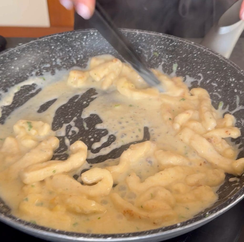 and the milk, keep stirring until the sauce thickens and becomes creamy.