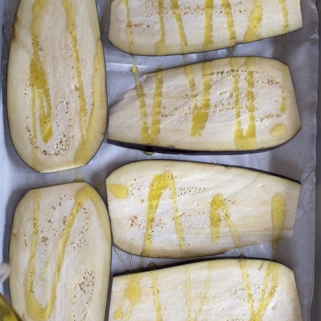 • Place the slices on a baking tray lined with parchment paper,