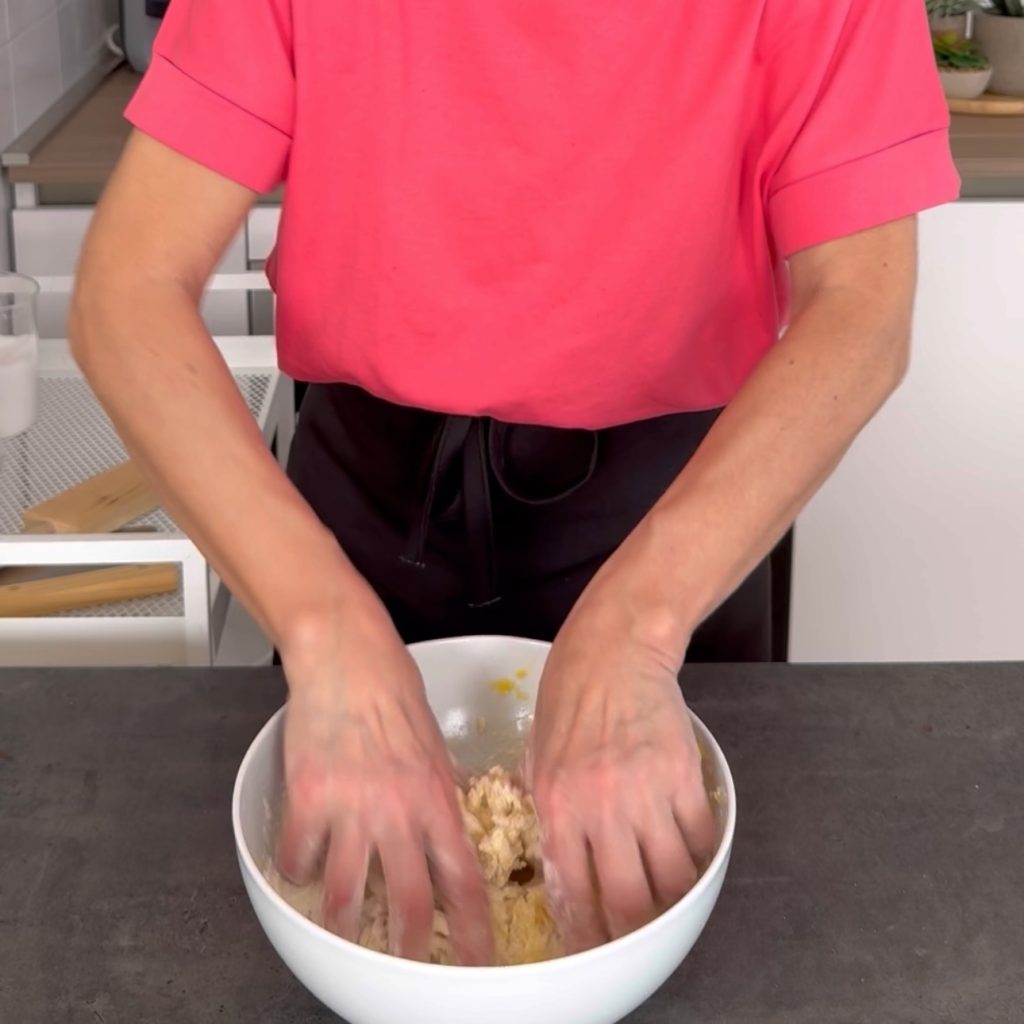 knead first with a fork and then with your hands to obtain a homogeneous, compact, and smooth dough.