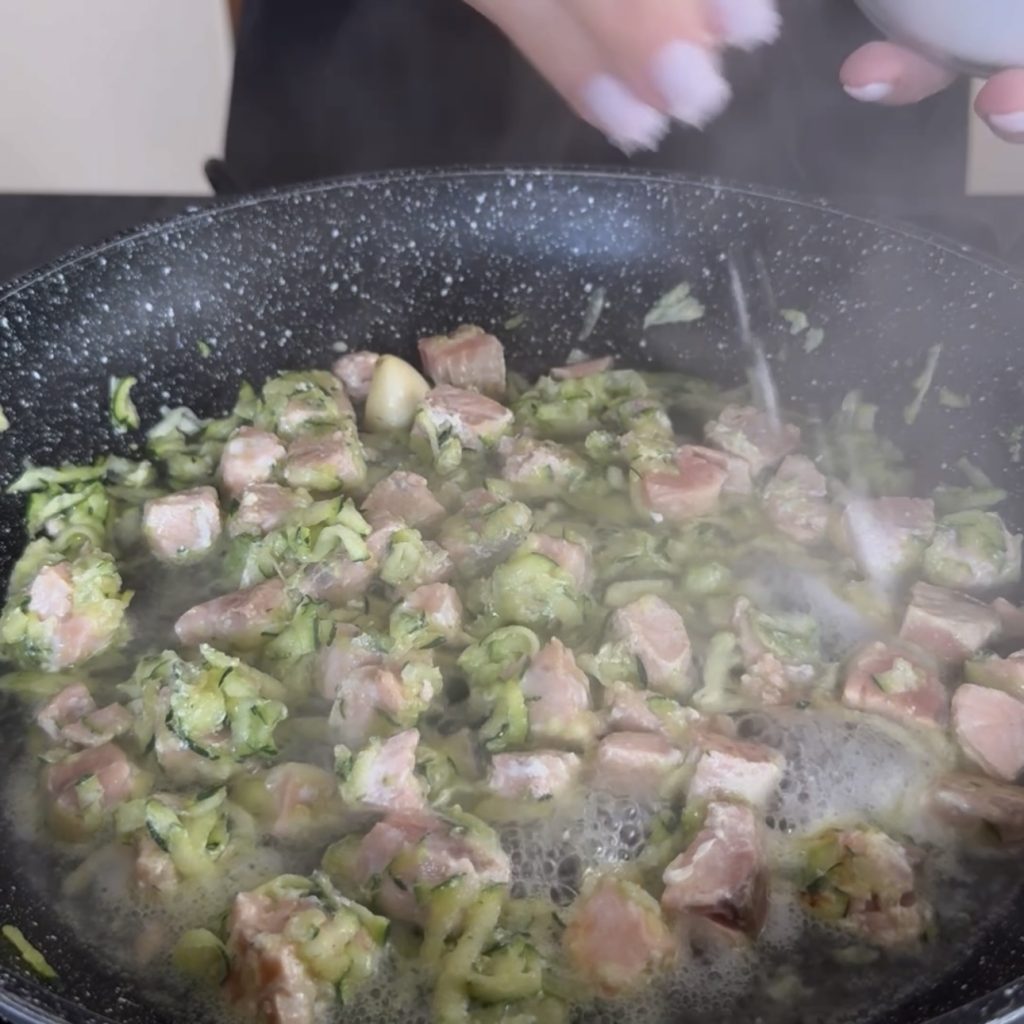 Let’s start preparing Gnocchi with salmon and zucchini. Wash the zucchini, trim it, and grate it using a large hole grater.