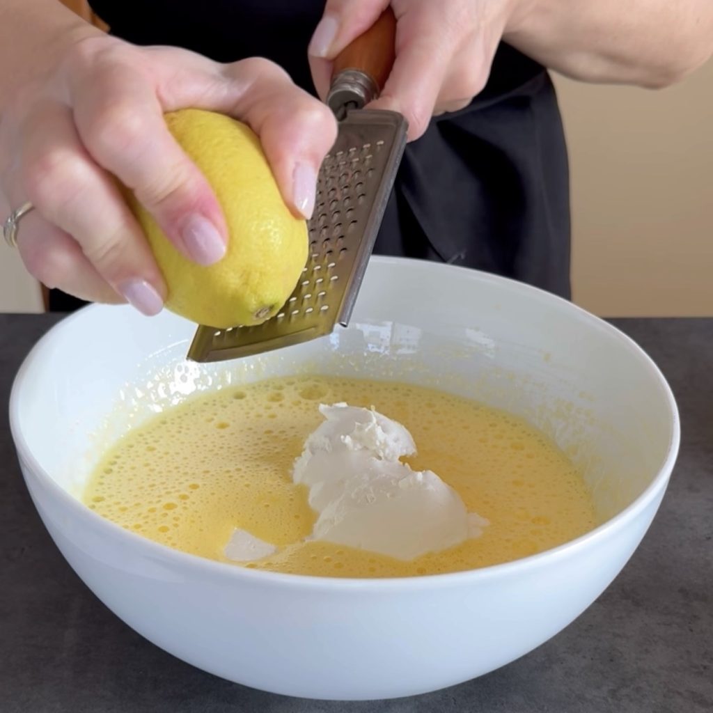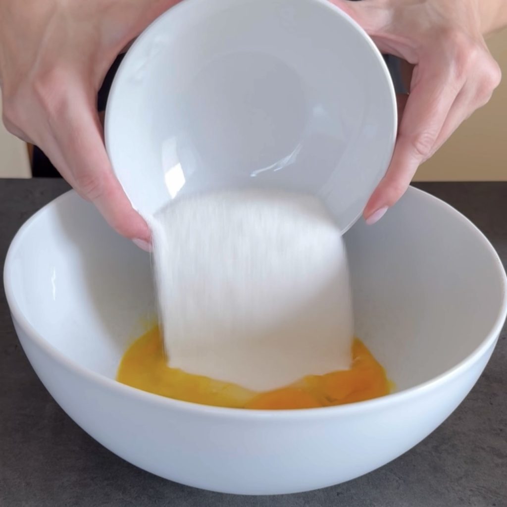 Let’s start preparing the lemon and ricotta cake. Pour the eggs into a bowl,