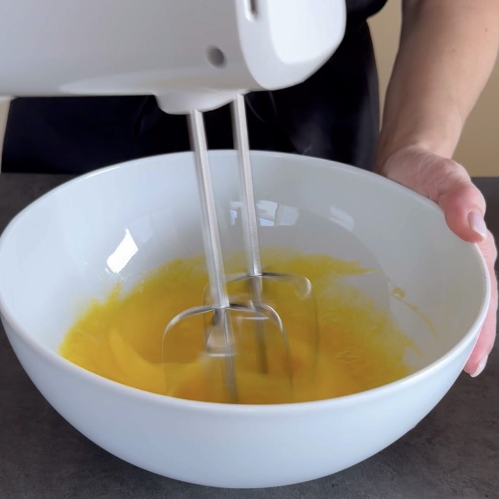 and mix with the electric mixer until you obtain a light and fluffy mixture.