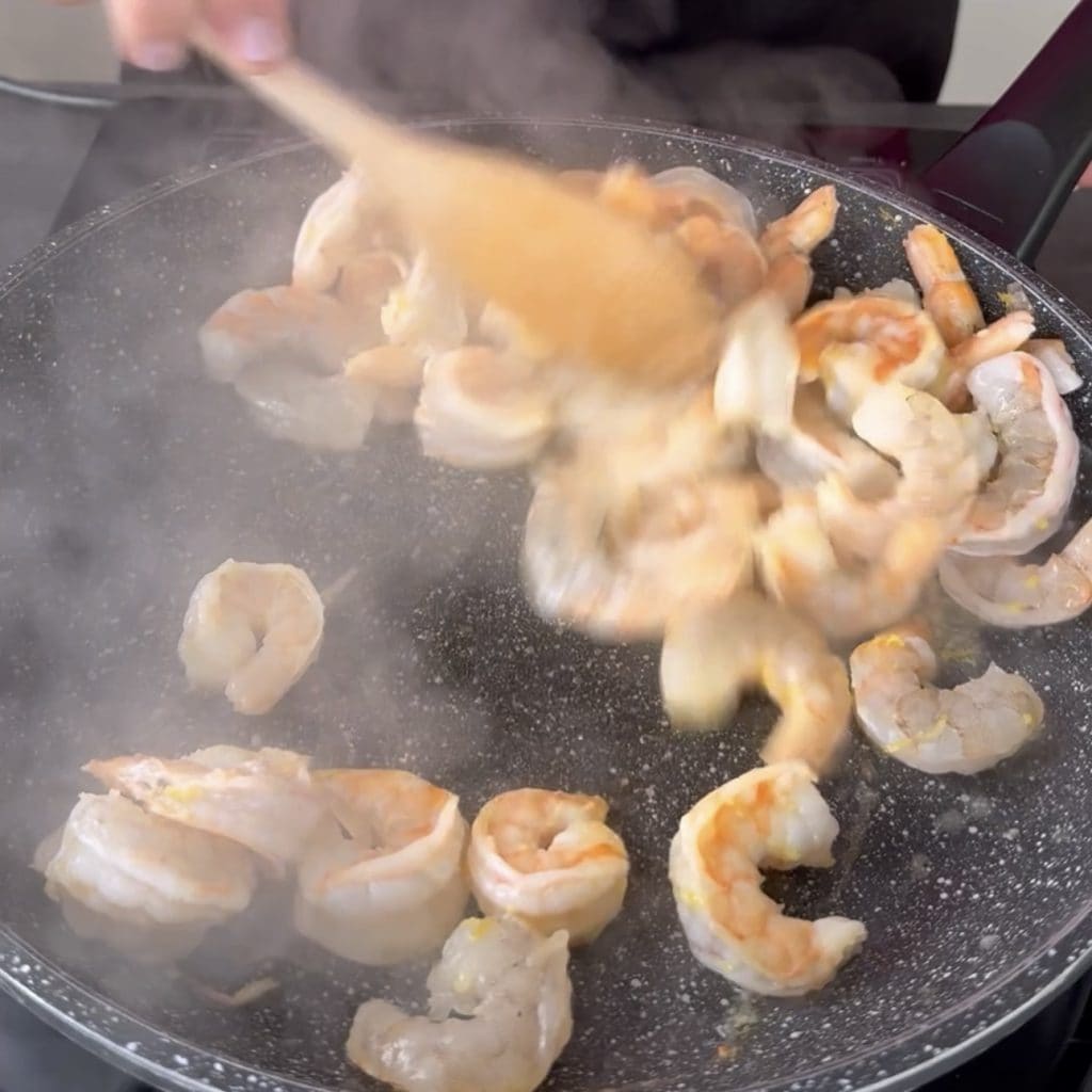 • Start preparing the Lemon Pan-Fried Prawns by removing the shell,