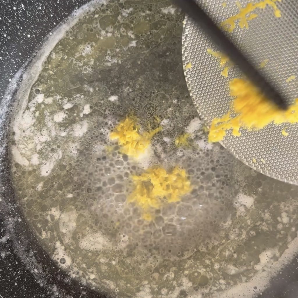 Let’s start preparing the lemon spaghetti. Pour some water into a pot, salt it, put it on the stove, and when it boils, add the spaghetti and cook them al dente. While the pasta is cooking, prepare the sauce. Wash the untreated lemon well, grate the peel into a small plate, and set it aside.