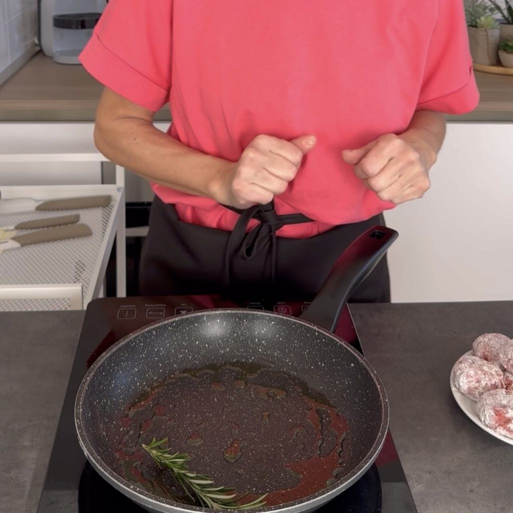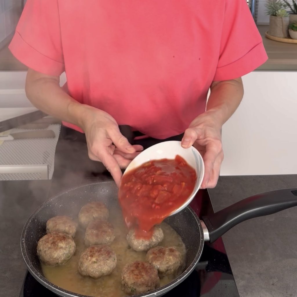 when the oil is hot, add the meatballs and brown them well on both sides.