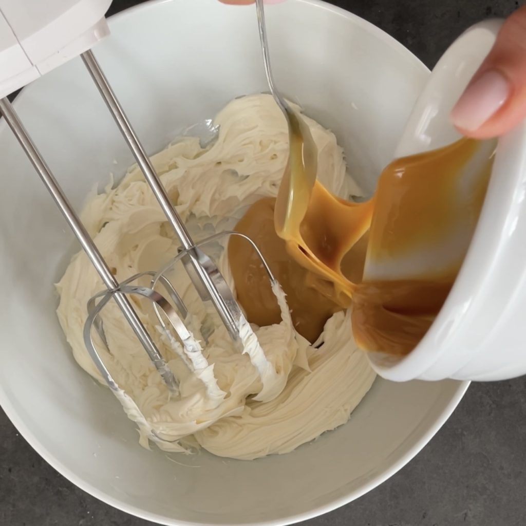• pour it into the cream and fold it in with a spatula and upward motions to avoid deflating the mixture.