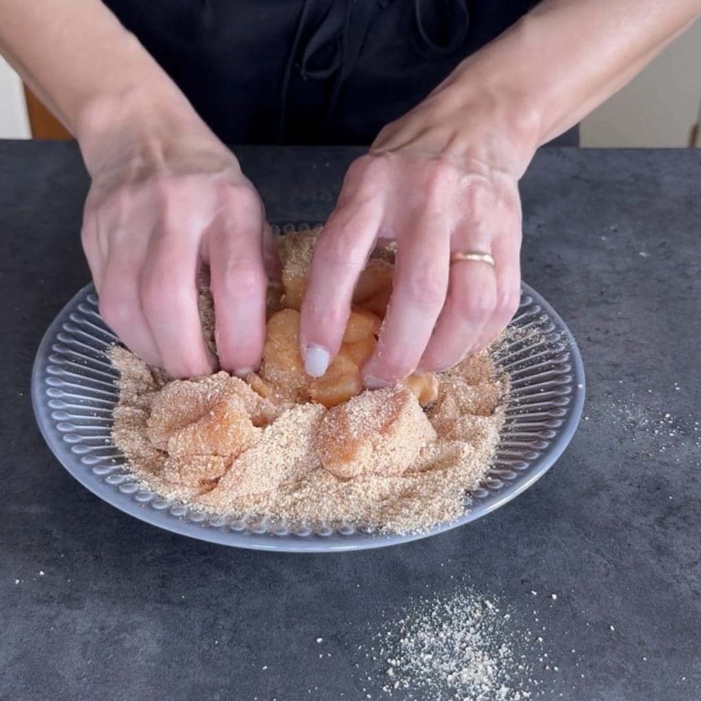 Paprika Chicken Bites an easy-to-make, quick, and flavorful main course. I used smoked paprika, but you can also use hot or sweet paprika depending on your taste and habits. The paprika chicken stays tender thanks to the breading and doesn’t get dry, as often happens when baking chicken breast. If you like the taste of paprika, I recommend trying CRISPY PAPRIKA POTATOES or PAPRIKA POTATOES IN AIR FRYER. Now, let’s see how to make paprika chicken bites, and if you try them, let me know. Barbara