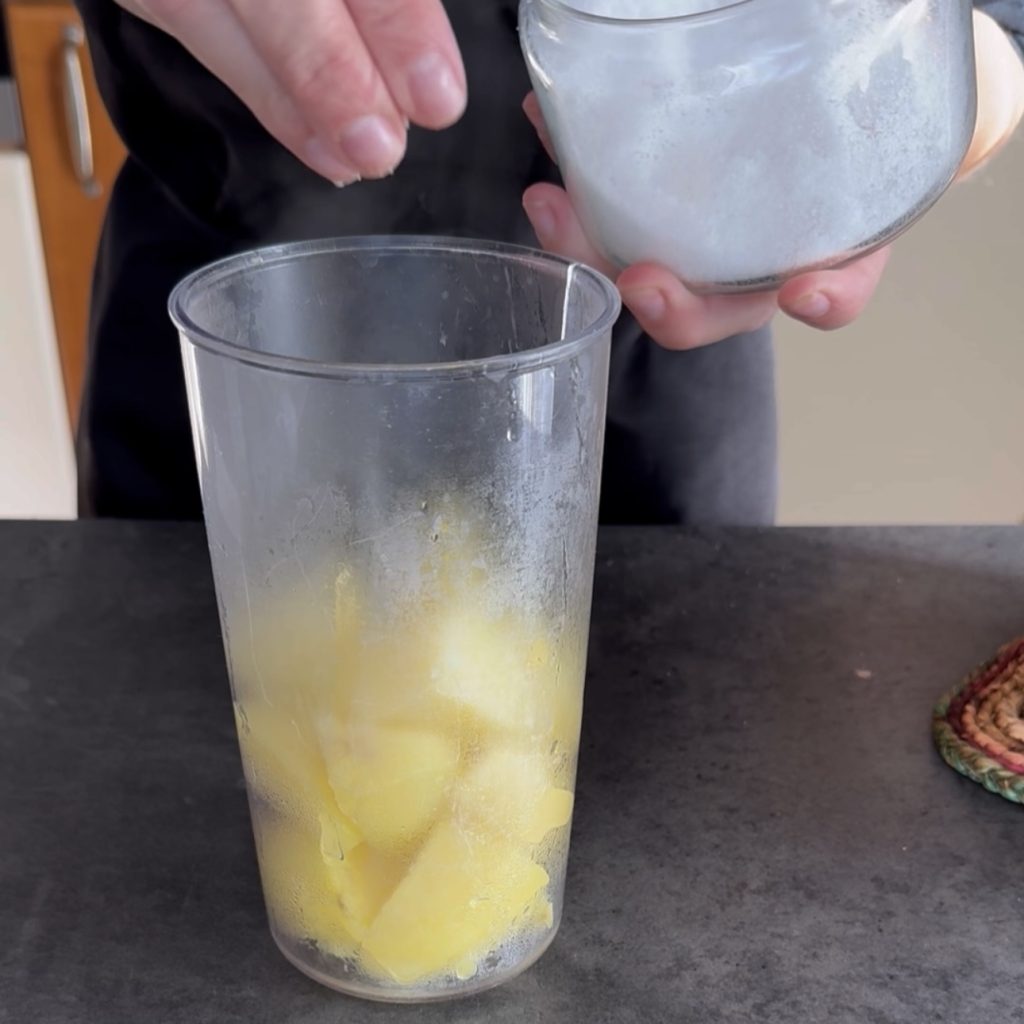 and gradually some potato cooking water, blend with the immersion blender until you obtain a smooth cream.