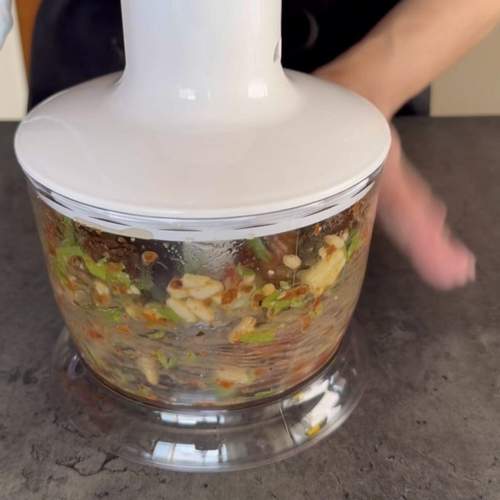 • blend everything intermittently, adding a thin stream of oil.