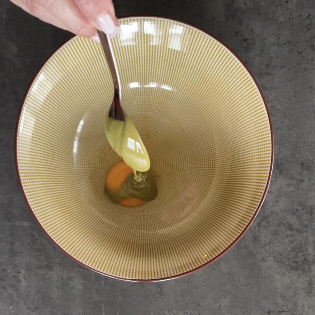 Let’s start preparing the pistachio muffins. Separate the egg, pour the yolk into a bowl