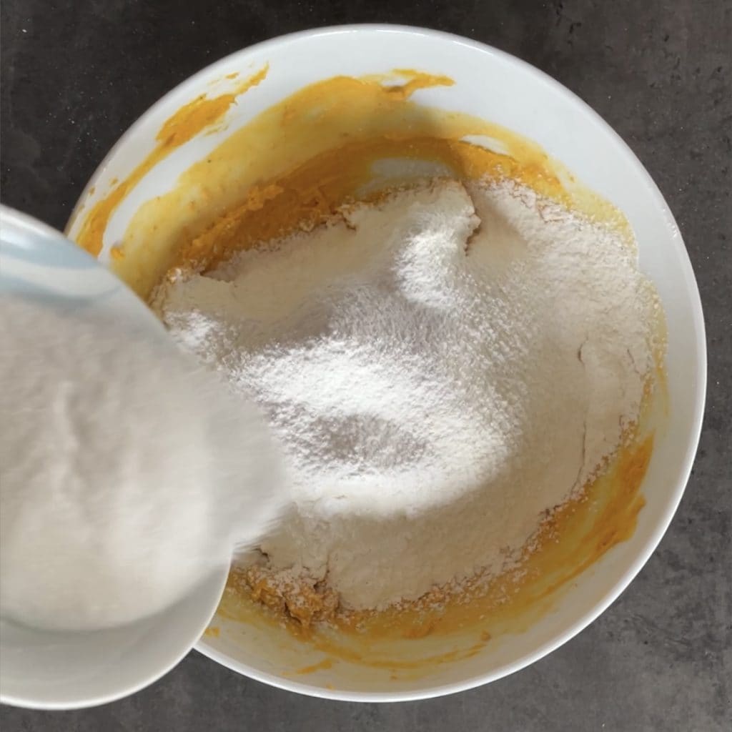 • Pour the cream into a bowl and add the pumpkin pulp,
