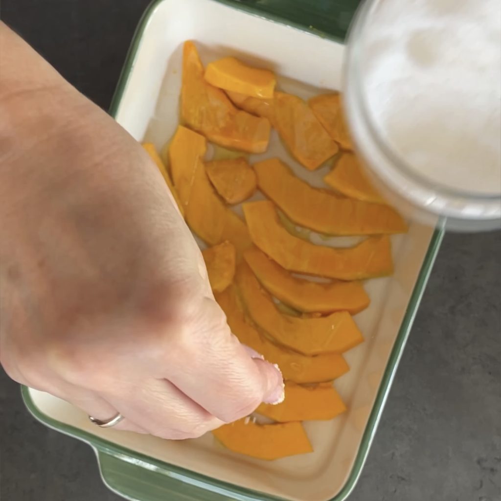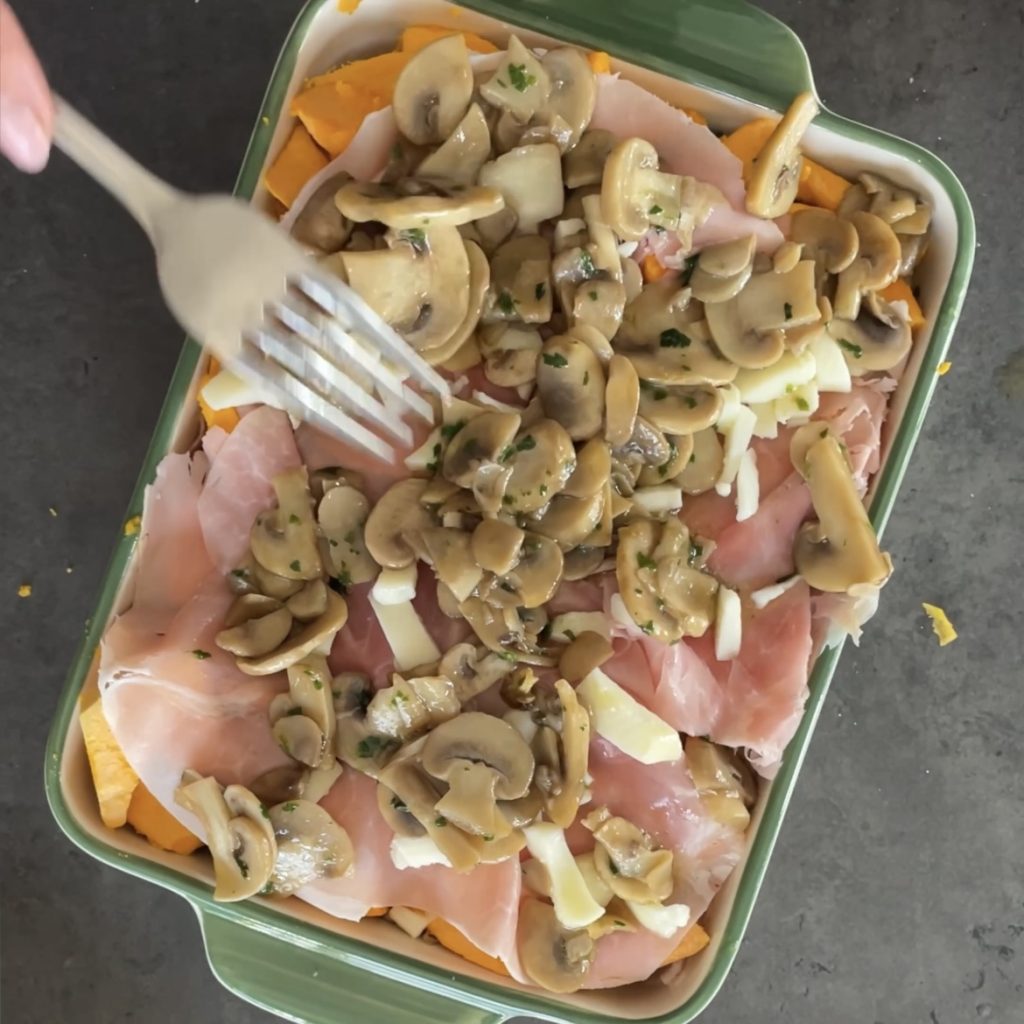 Pumpkin casserole is a delicious main course, easy to make, full of flavor, and perfect for special occasions. The pumpkin casserole with ham and mushrooms is made with raw pumpkin, which makes it really easy and quick. I used champignon mushrooms, but you can also use mixed, fresh or frozen mushrooms. If you like, and it’s more convenient for you, you can make individual servings of pumpkin casserole, perhaps using soufflé molds. If you are a pumpkin lover, I recommend checking out PUMPKIN RECIPES and also 10 LIGHT PUMPKIN RECIPES. Let’s see now how to make the pumpkin casserole and if you try it, let me know. Barbara
