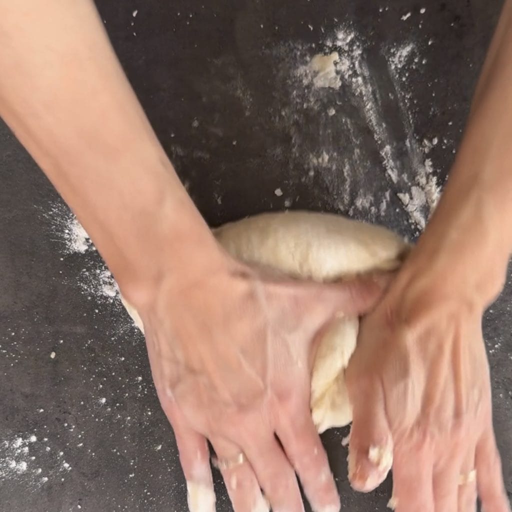 then transfer it to the work surface and continue kneading until you have a nice homogeneous dough,