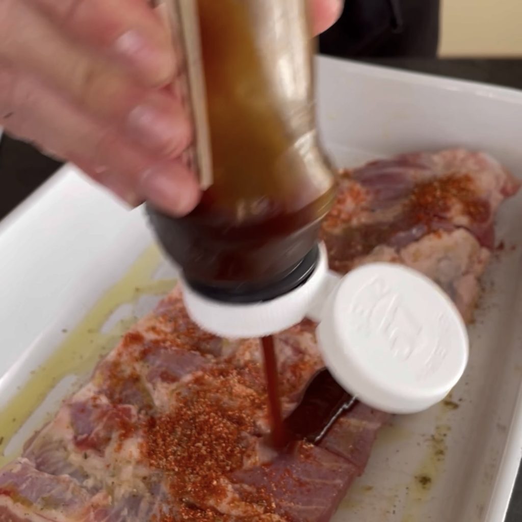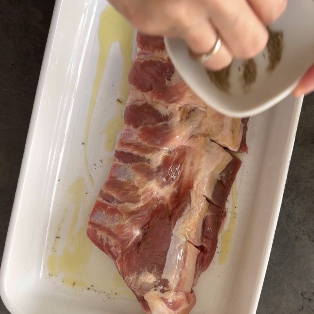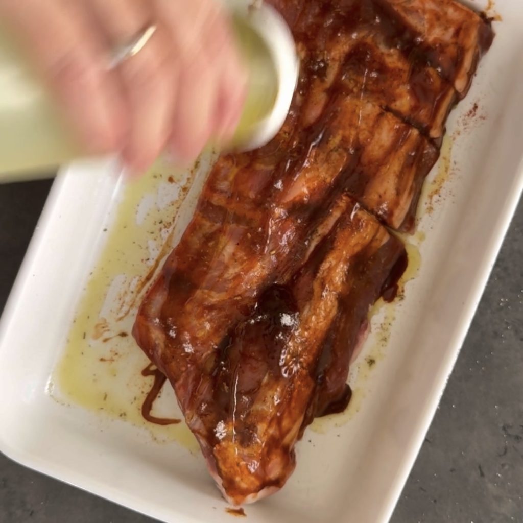 • and massage it onto the ribs, also on both sides so that the underside is well covered with the sauce.