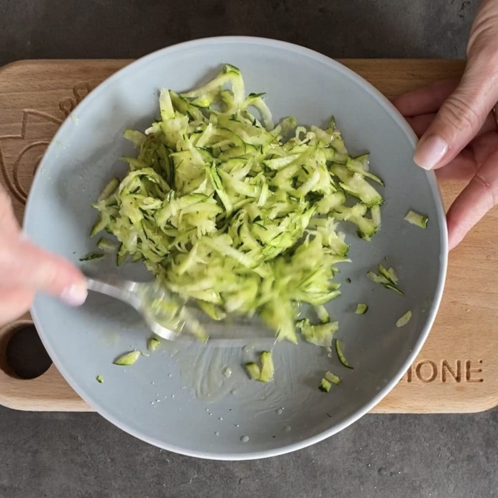 • Add the rice into a bowl, add the grated and seasoned zucchini,