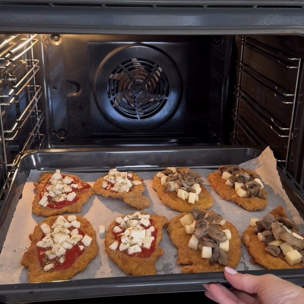 Stuffed cutlets are a delicious main course enjoyed by both adults and children, and you can stuff them in many ways according to different tastes. The pork cutlets, once fried, are arranged in a baking dish and used as a base to make a kind of mini pizza. In my case, I made them pizzaiola style with tomato, mozzarella, and oregano, and others with Asiago and mushrooms, but you can fill them with ham, olives, artichokes, vegetables, or whatever you prefer or have at home. Now let’s see how to make stuffed cutlets, and if you try them, let me know. Barbara