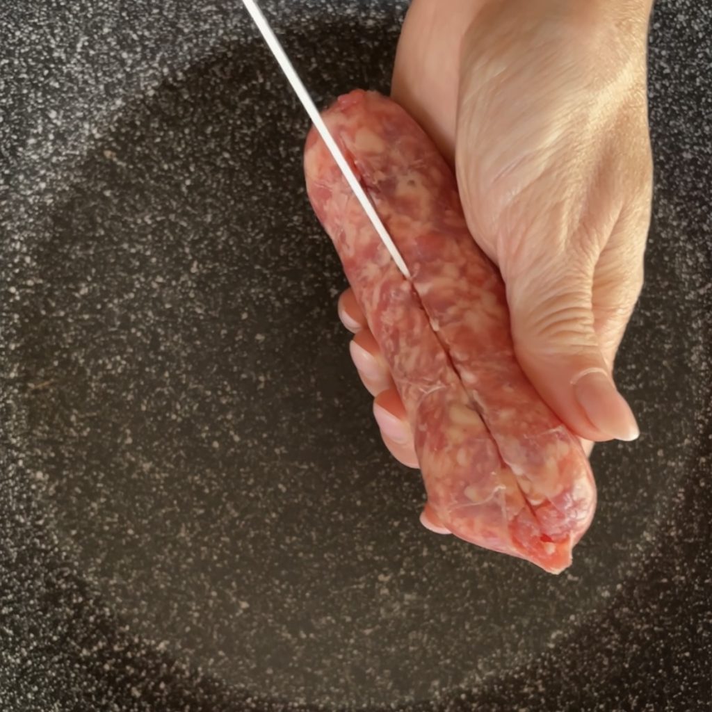 When the sausage is well cooked, add the mushrooms in the pan and let them absorb the flavors for a few minutes over low heat.