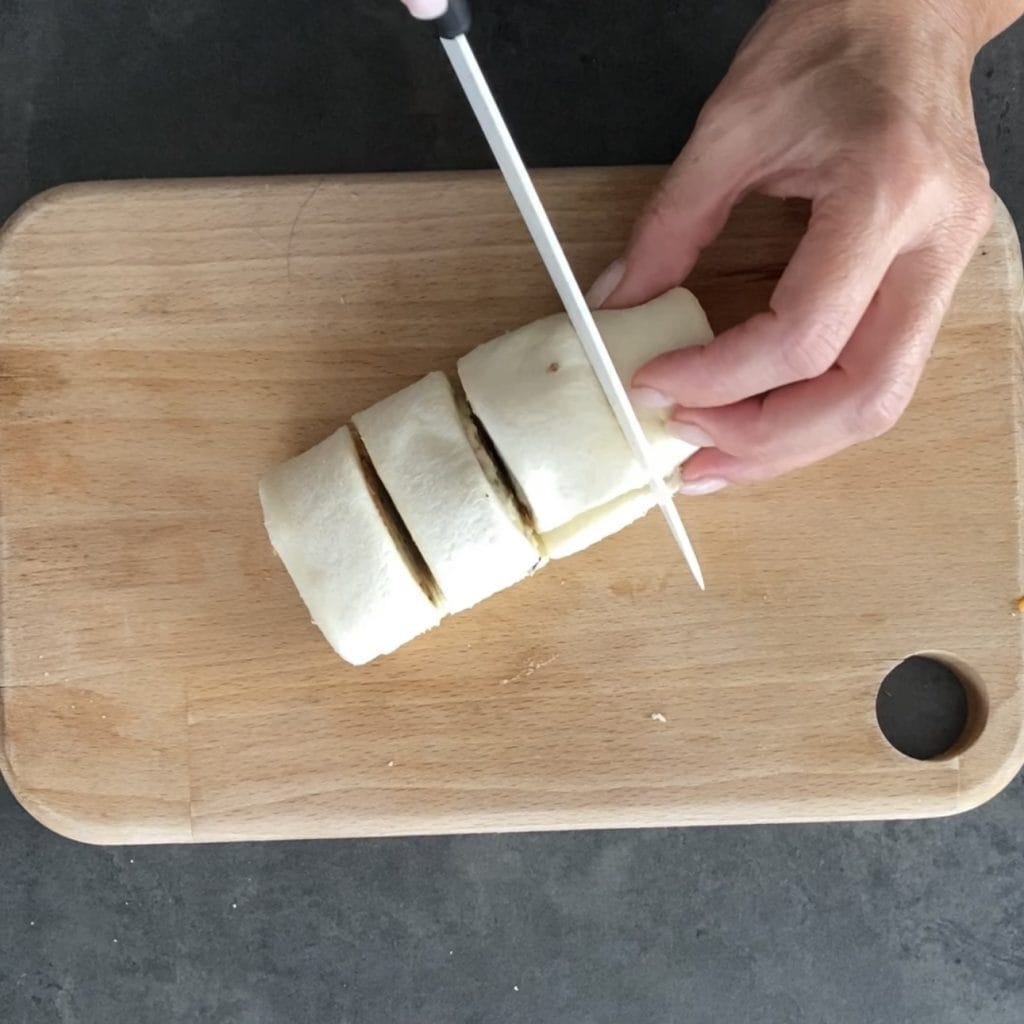 • and seal it with plastic wrap. Continue in this way with the other slices of bread. Let the rolls rest in the fridge for at least 30 minutes.