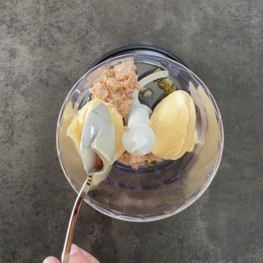 Prepare the tuna sauce, pour into the blender glass, the capers,