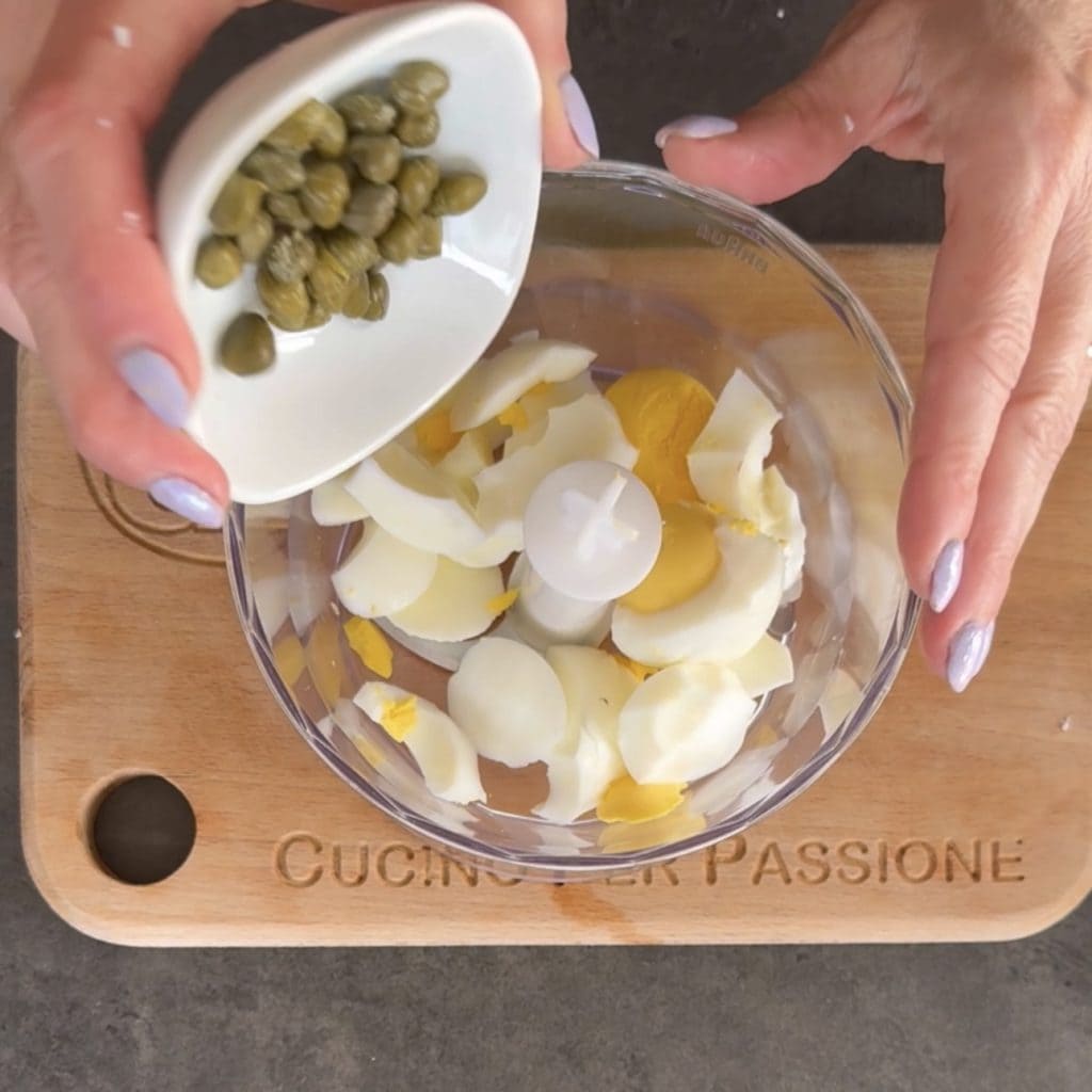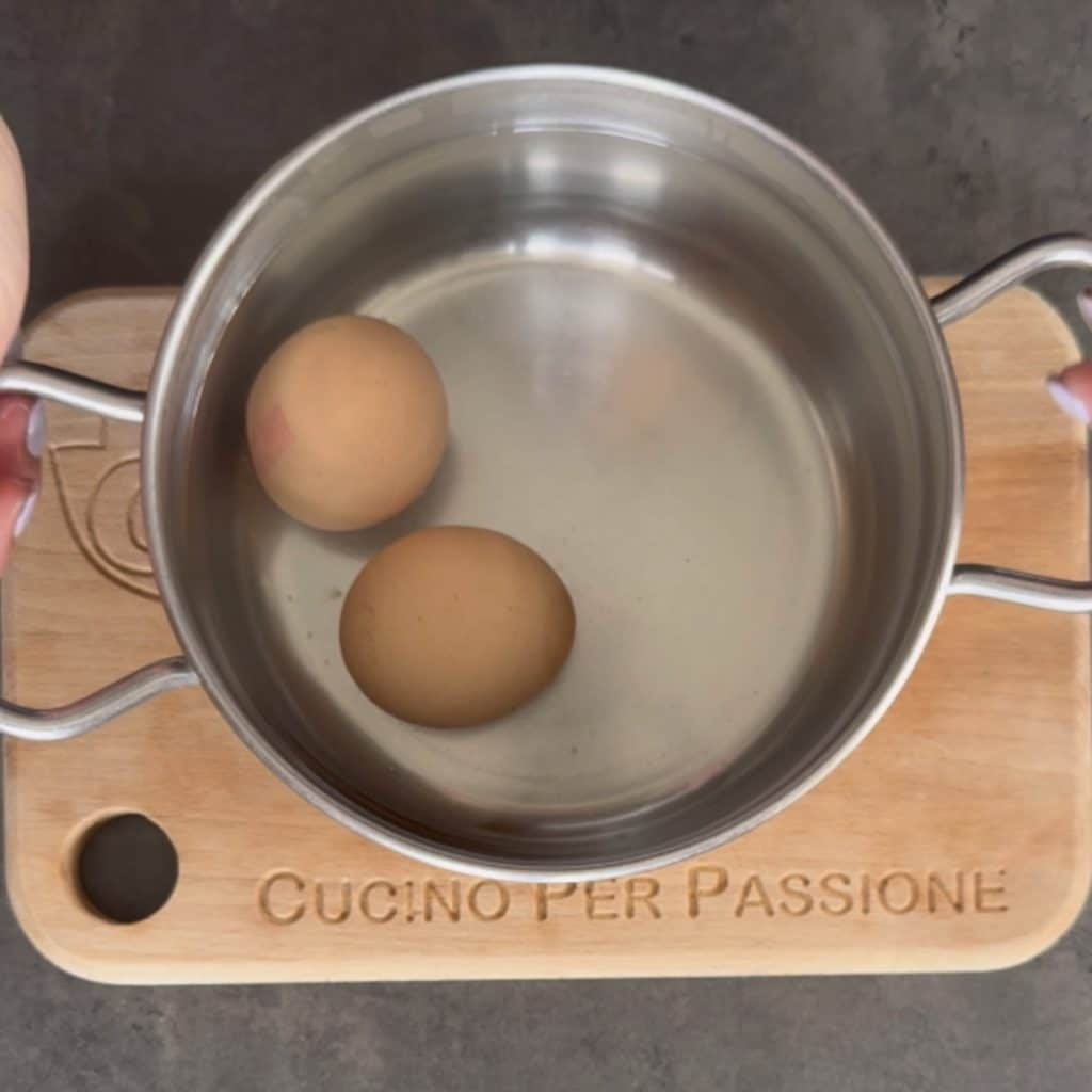 Let’s start preparing the Tuna Peppers, place the eggs in a saucepan, add water, put on the stove and once the water starts to boil, cook for 7 minutes, then put them under cold running water and let them cool down. The thermal shock will make it easy to peel the eggs. Cook the peppers
