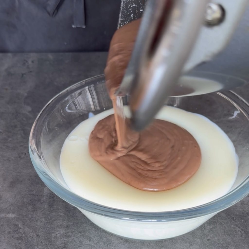 Take the vanilla pudding that has thickened in the meantime and pour the chocolate pudding on top,