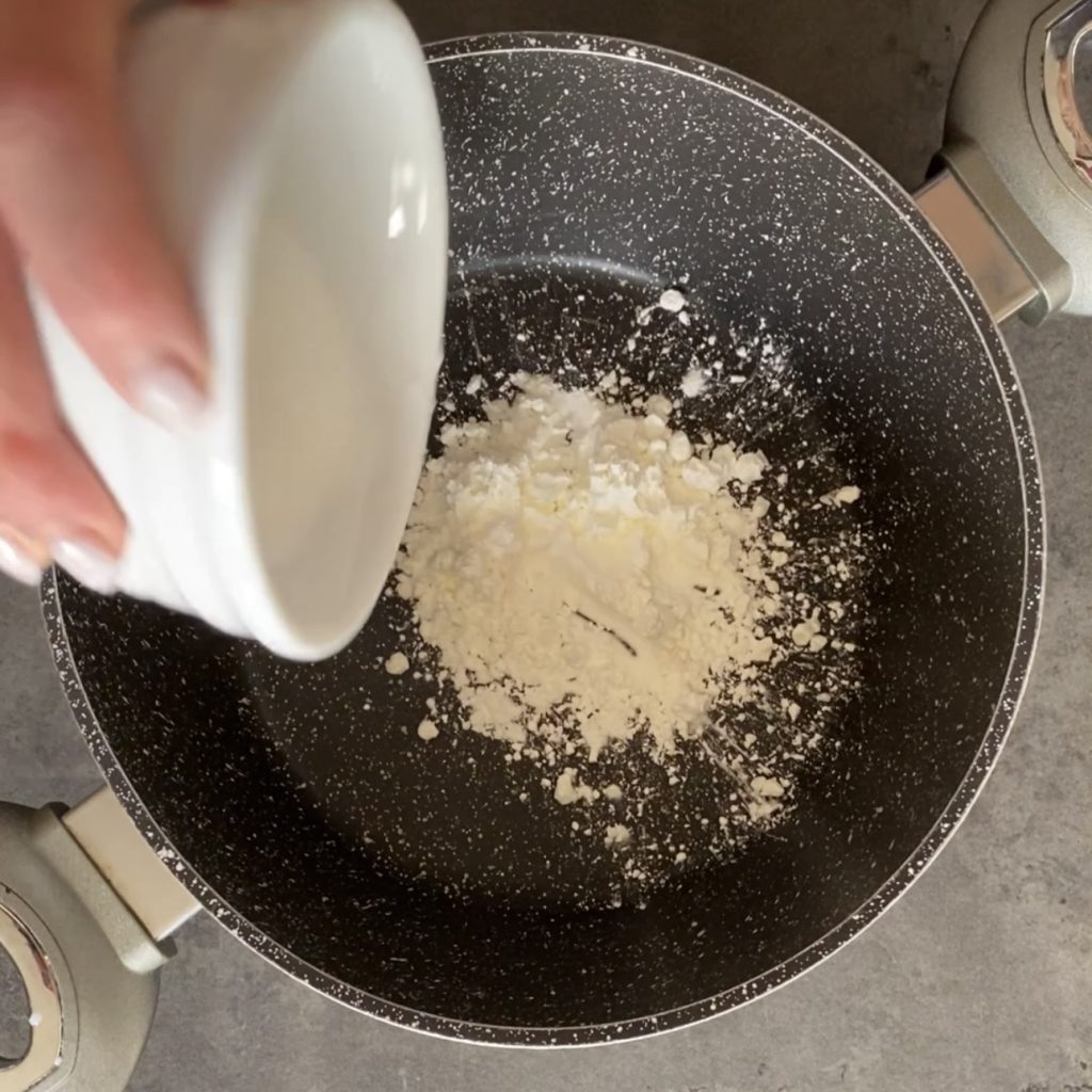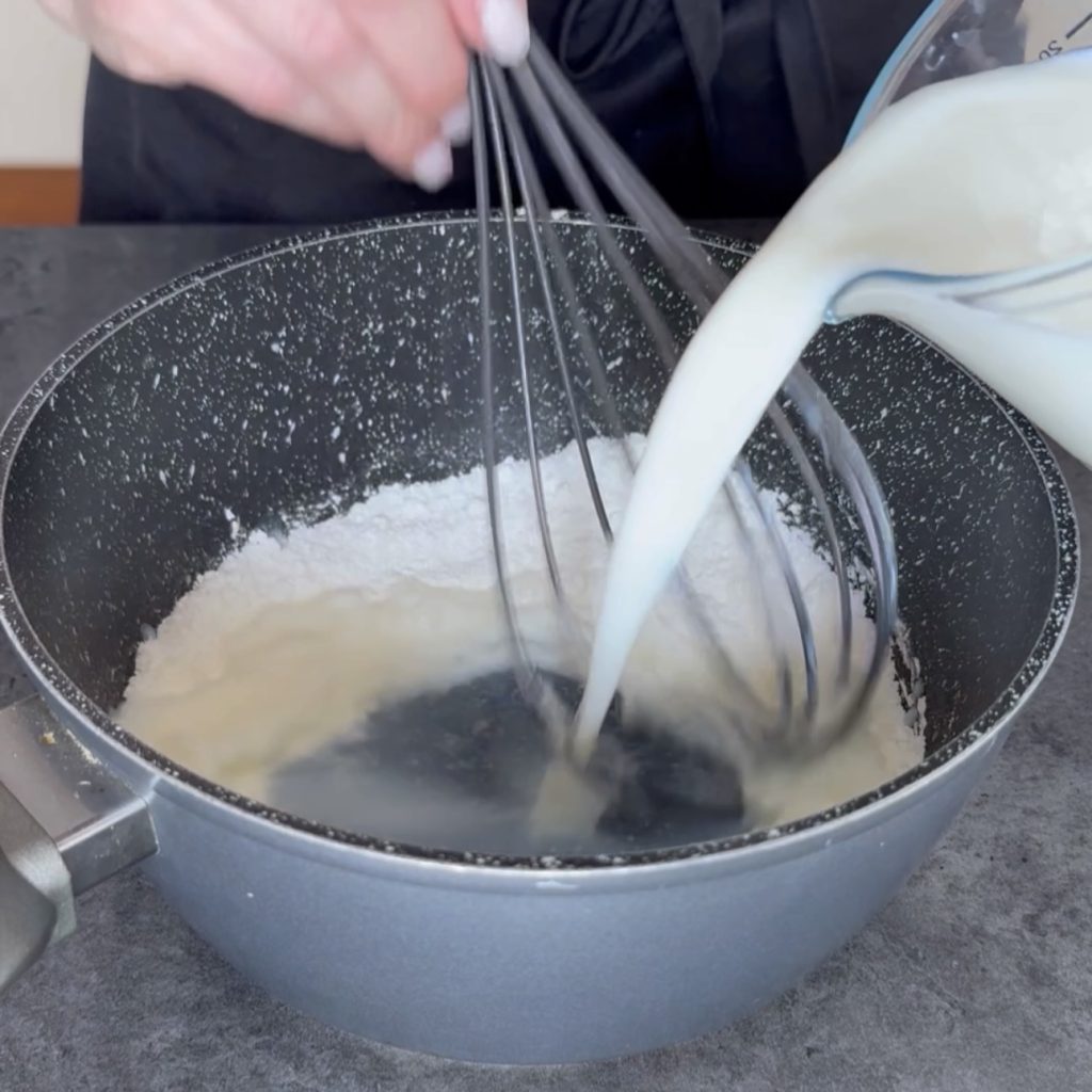 gradually add the milk, allowing it to incorporate and prevent lumps.