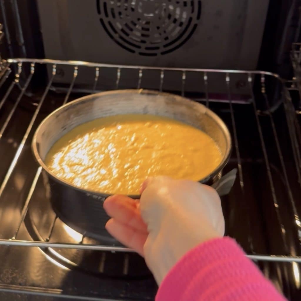 • When the cake is baked, take it out, let it cool down, then remove it from the pan and dust it with powdered sugar.