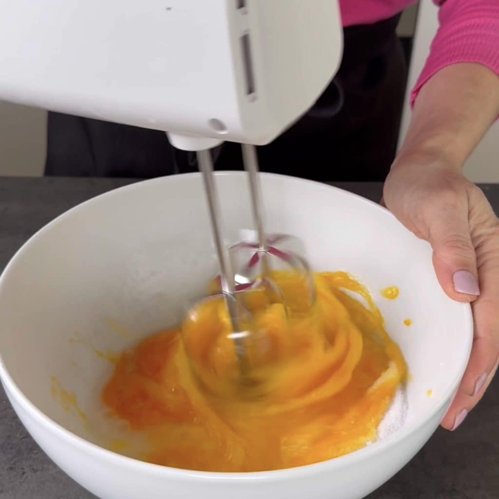 • Work with the electric whisk until you get a light and fluffy mixture,