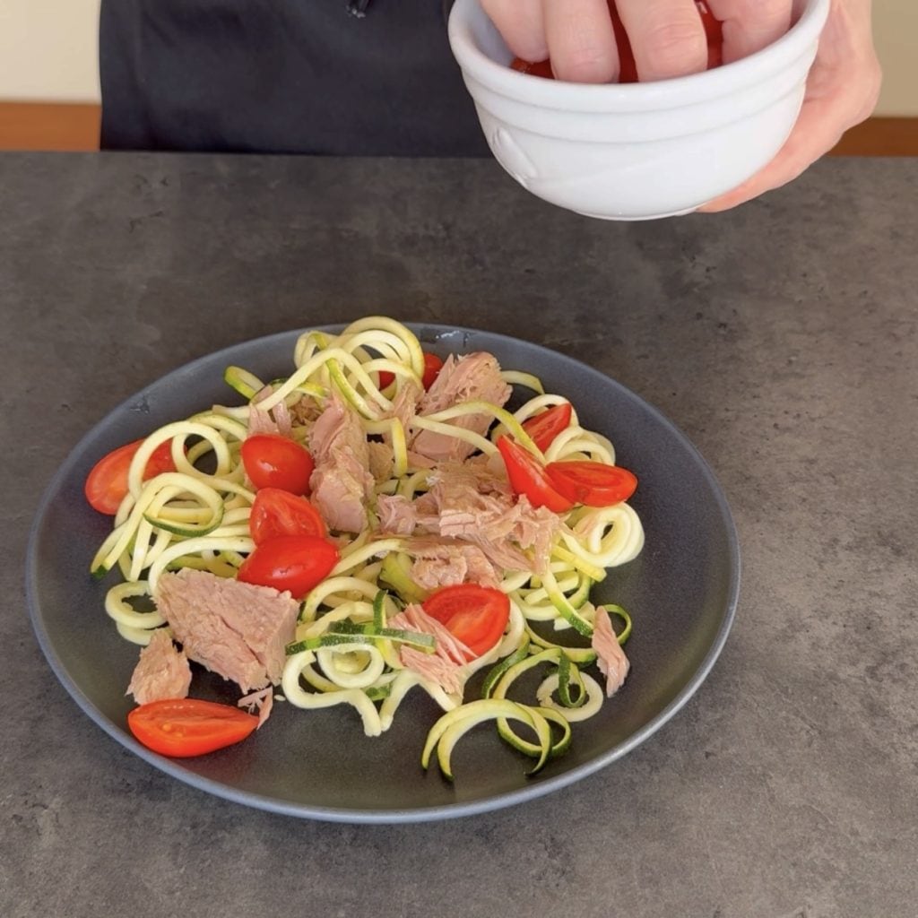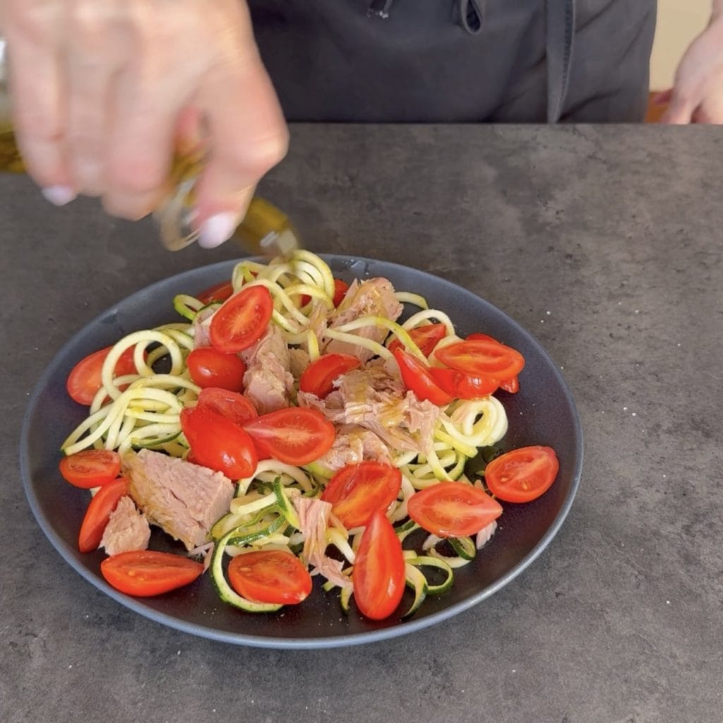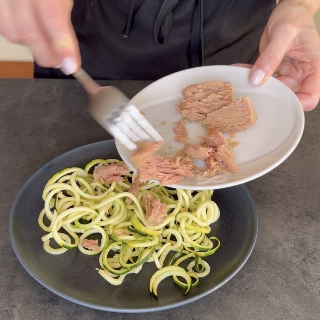 Then add them to the plate with the zucchinis and tuna.