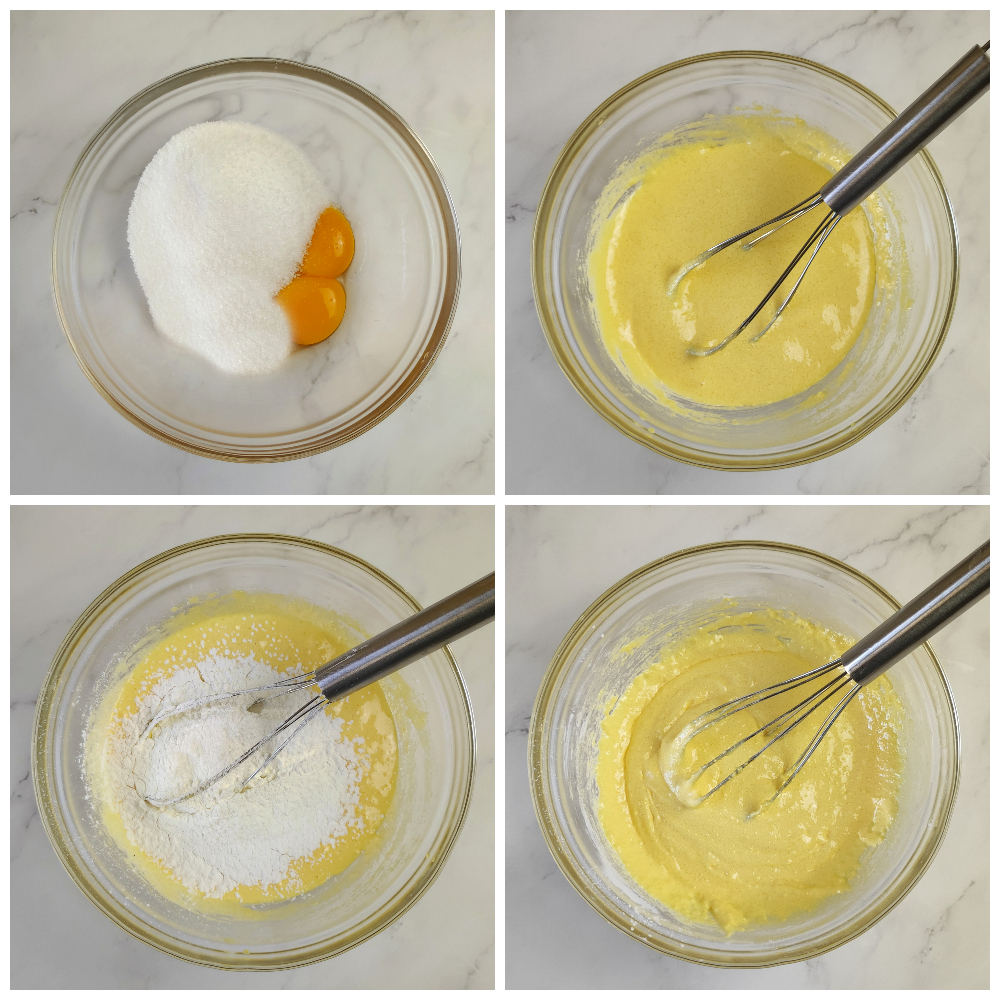 In a large bowl beat the eggs with the sugar, mix well and then add the cornstarch little by little.