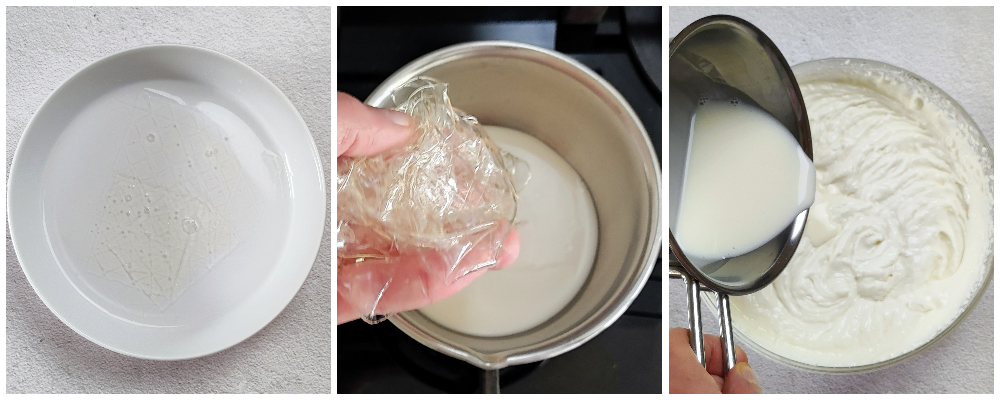 - 2 tbsp sweetened non-dairy whipping cream (to dissolve the gelatin)