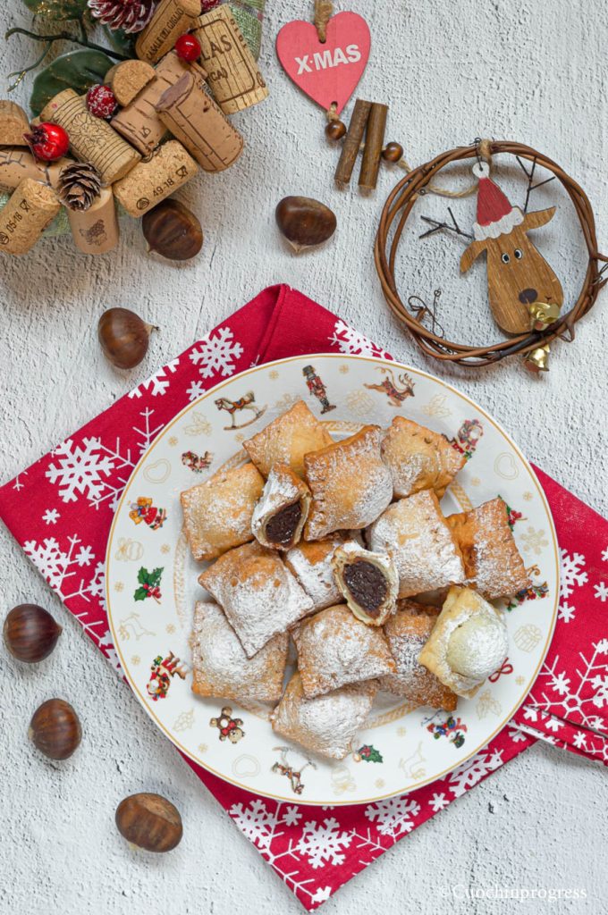 The CHESTNUT CALZONCELLI are a Christmas dessert from the traditions of several regions of our country, particularly the province of Salerno, Basilicata and, with some variations, also Puglia. A dessert made with simple ingredients and an ancient history, full of aromas and flavors that, as you can try, make it truly unique and worthy of being served on festive tables.