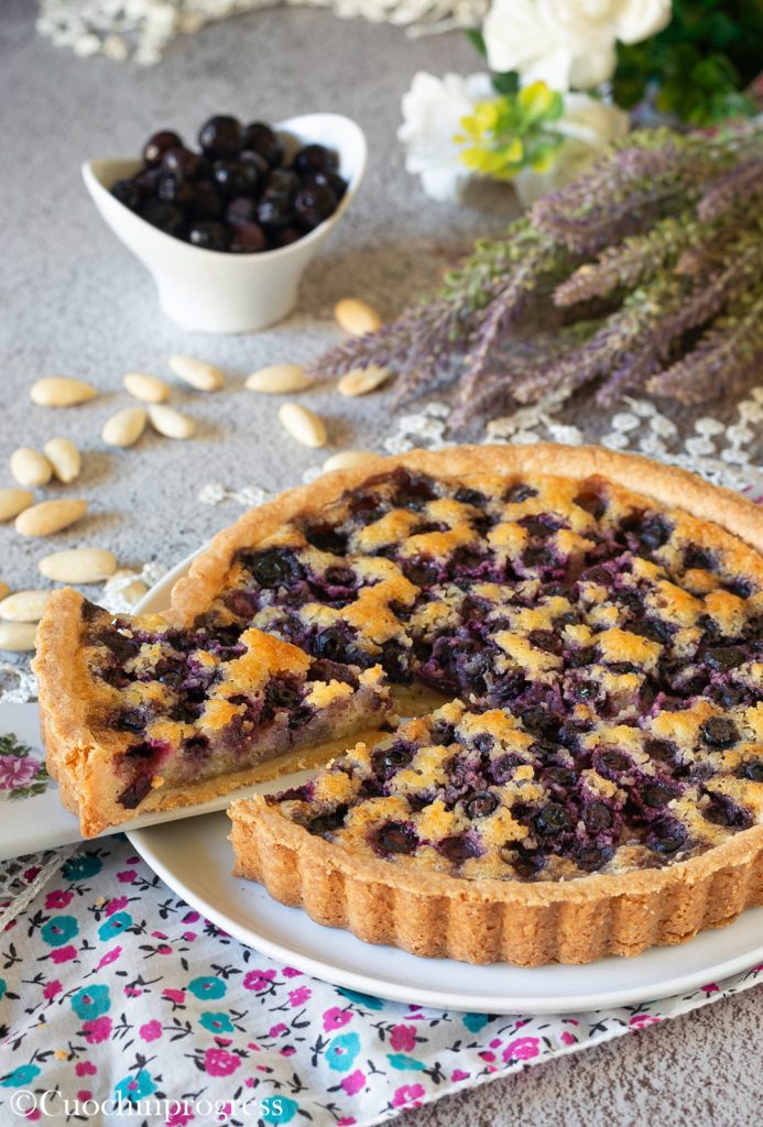 The FRANGIPANE BLUEBERRY TART is an elegant and delicious dessert, featuring a crumbly shortcrust pastry base, a layer of soft, fragrant frangipane cream, and a topping of blueberries that provide a perfect contrast between sweetness and tartness.