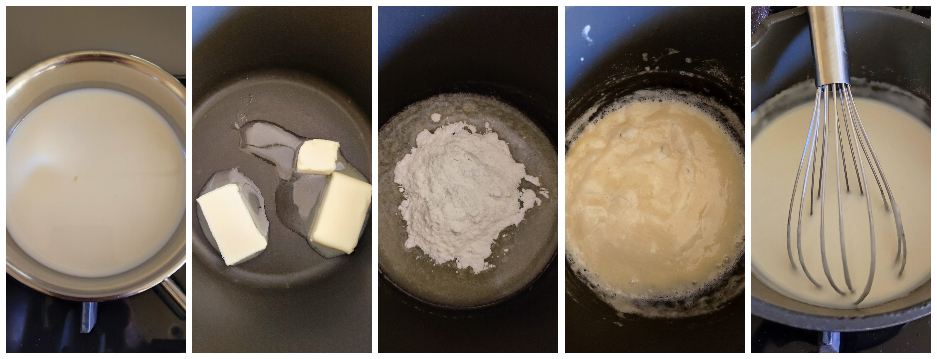 Season with salt, reduce the heat and cook until the béchamel is smooth and creamy. If it becomes too thick, add more milk. Season with nutmeg.