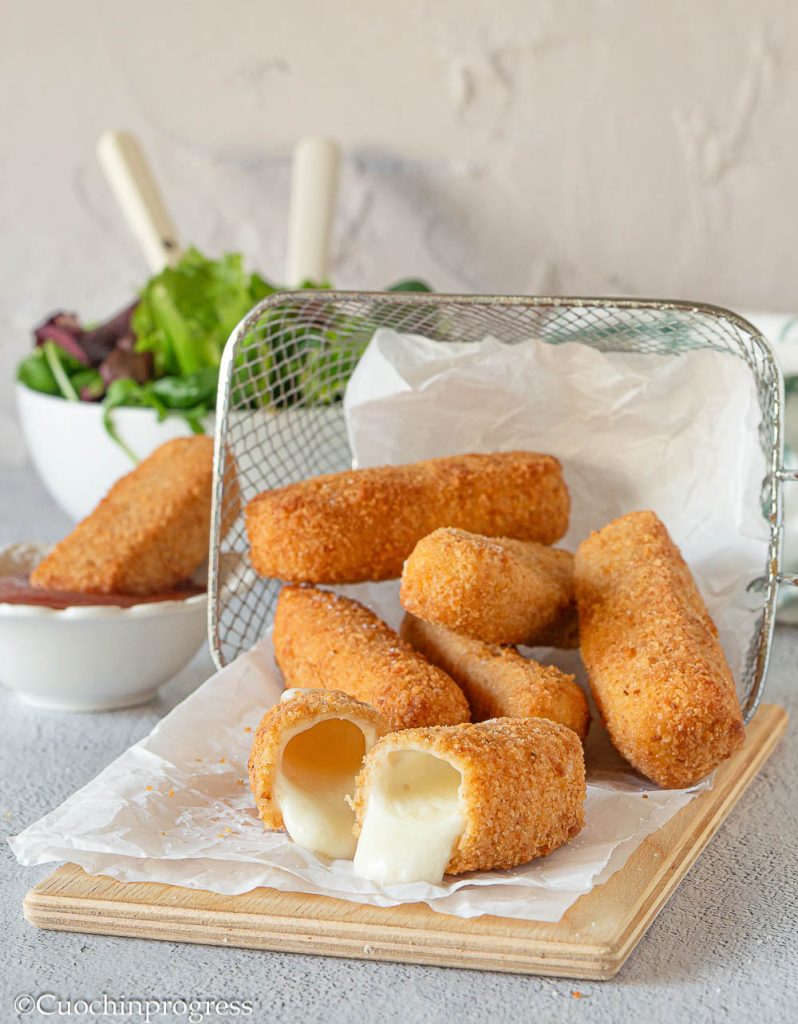 Preparation of melty mozzarella sticks
