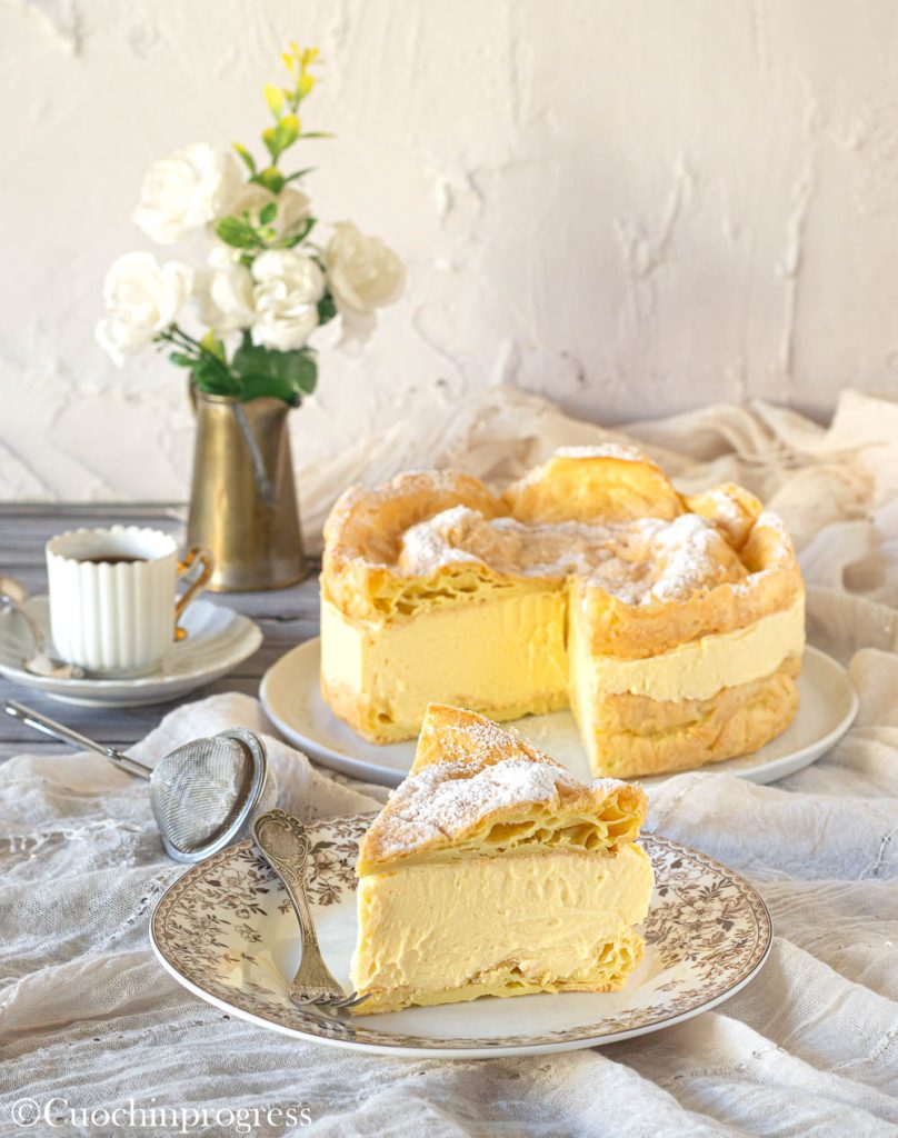 Karpatka is a variation of the French cake Millefeuille or the Polish Napoleonka, but stands out for its more rustic, less laminated pastry. It is a delicate yet intensely flavored dessert, perfect for lovers of creams and the contrast between soft and crunchy textures.