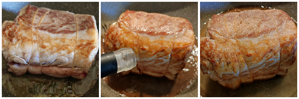 • Turn up the heat and brown it well on all sides. This step is essential to keep the juices inside and the meat tender.