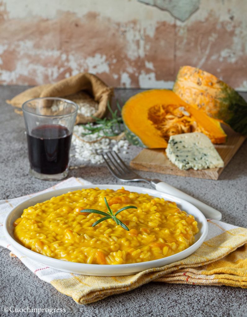 Preparing this risotto is quite simple, but it is very important to choose the ingredients well, especially the pumpkin. I love the Mantuan pumpkin for its firm and flavorful flesh, but everyone has their own tastes and the Italian varieties of these squashes are truly endless. Regarding the gorgonzola, you can choose between a more intense, blue-veined flavor or a milder one, but in all cases you will obtain an exceptionally good result. You can enrich the risotto with leeks, speck, or sausage.