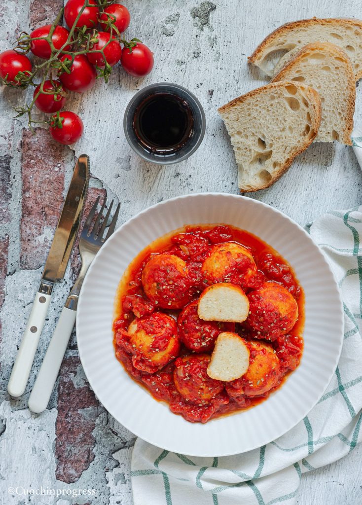 The RICOTTA MEATBALLS IN TOMATO SAUCE are a very simple but delicious main course, ideal for those who don’t like meat but still want to enjoy traditional grandmother-style cooking. It’s a nutritionally balanced dish since ricotta is low in fat and the little meatballs, while very tasty, are baked in the oven.
