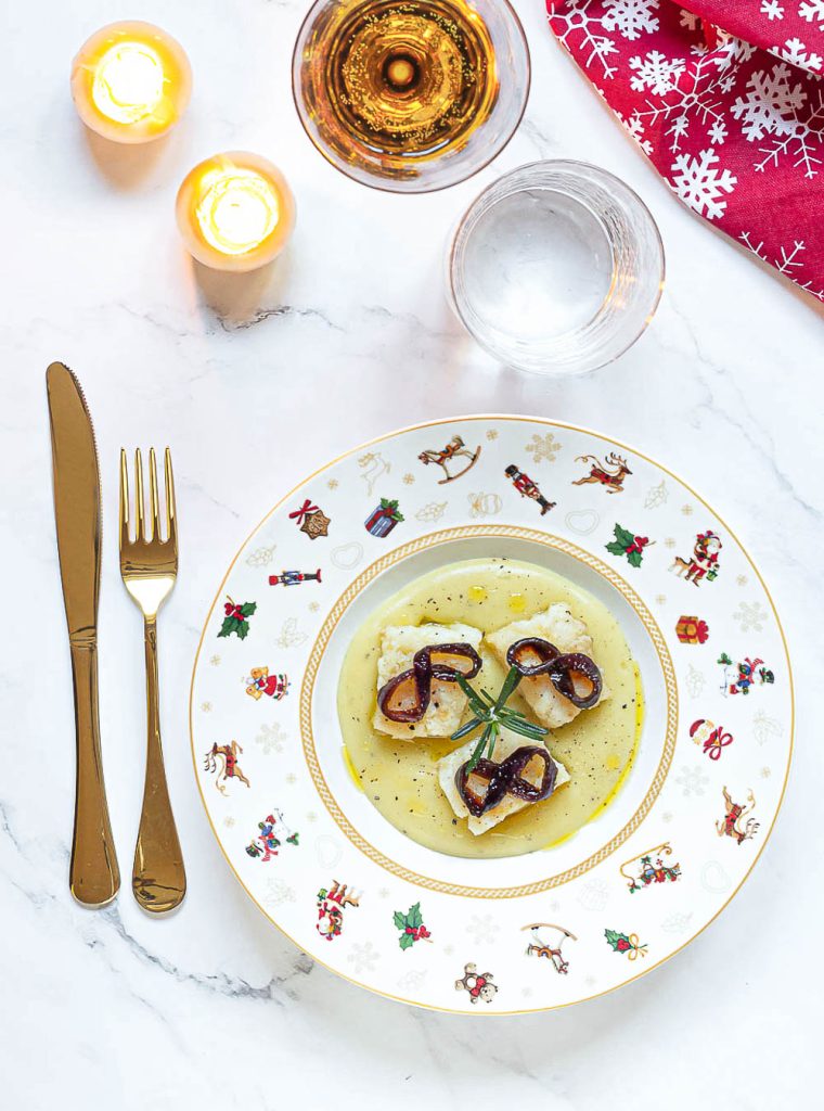 The SALT COD ON POTATO CREAM WITH CARAMELIZED ONIONS is an easy-to-prepare main course with a delicate and evocative flavor: it keeps the simplicity of the ingredients while enhancing their taste and distinctive textures, as only the best recipes can do. It is a dish that can be presented at a festive lunch, perhaps even on Christmas Eve when, according to tradition in many places, salt cod is served.