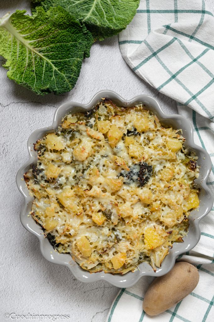 SAVOY CABBAGE AND ROASTED POTATOES are an ideal dish to prepare in the cold season and can be served as a main course, hearty side or, even better, a one-dish meal. Easy to make, nutritious and very flavorful, this peasant-tradition comfort food is also perfect for those following a vegetarian diet.